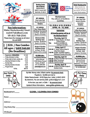 GLDBA President: Walter Niesluchowski - IL, Vice President : Ronnie Zuchegno Jr - NY, Hall of Fame: James Dudasik - OH, and